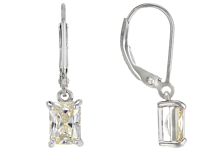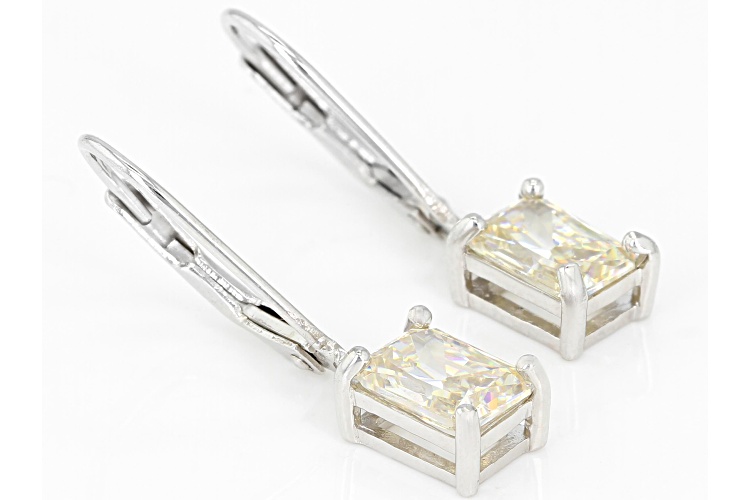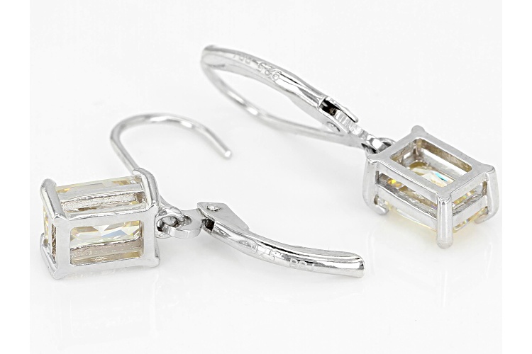 2.80ctw square octagonal radiant cut Lab Created Strontium Titanate Rhodium Over sterling silver solitaire earrings. Measures approximately .94"L x .19"W. Lever backings.