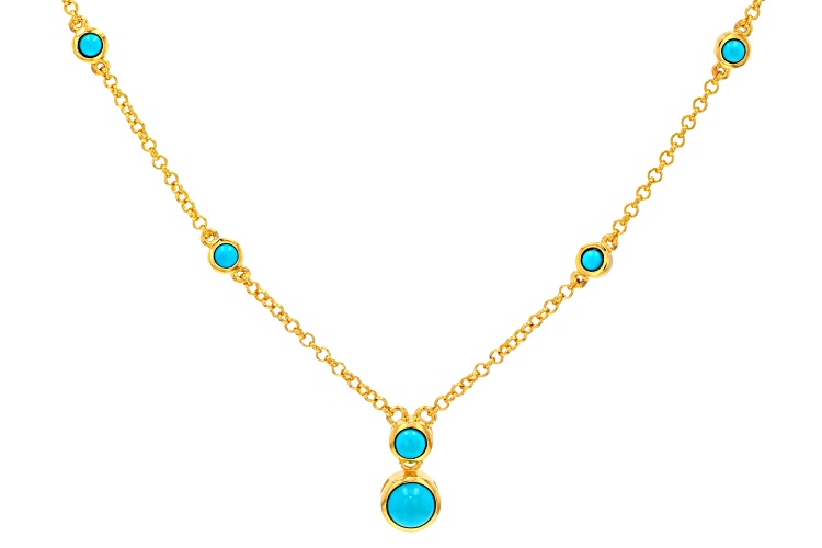 3mm, 4mm, 6mm Sleeping Beauty Turquoise 18k Yellow Gold Over Sterling Silver Necklace