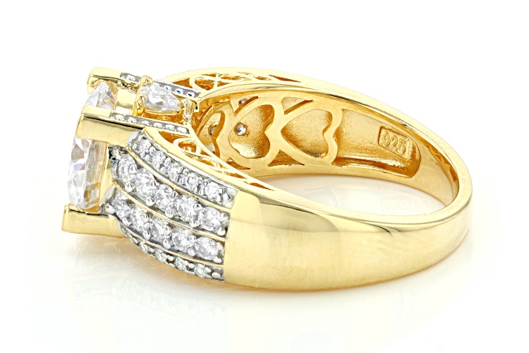 Pre-Owned MOISSANITE FIRE(R) 3.64CTW DEW ROUND & TRILLION CUT 14K YELLOW GOLD OVER SILVER RING - Size 9