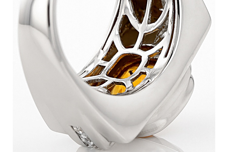 3.51ct Square Cushion Citrine And .40ctw Round White Zircon Rhodium Over Sterling Silver Men's Ring - Size 12