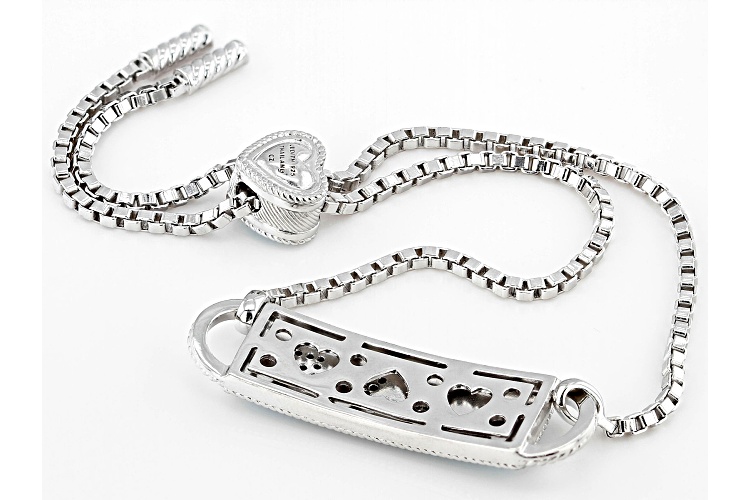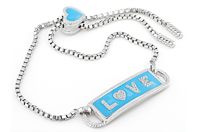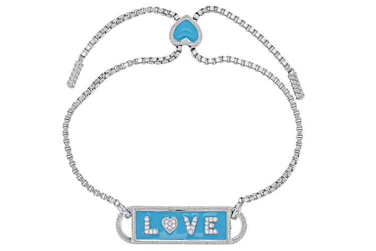 Judith Ripka 0.20ctw Bella Luce® Diamond Simulant & Blue Enamel Rhodium Over Sterling Love Bracelet