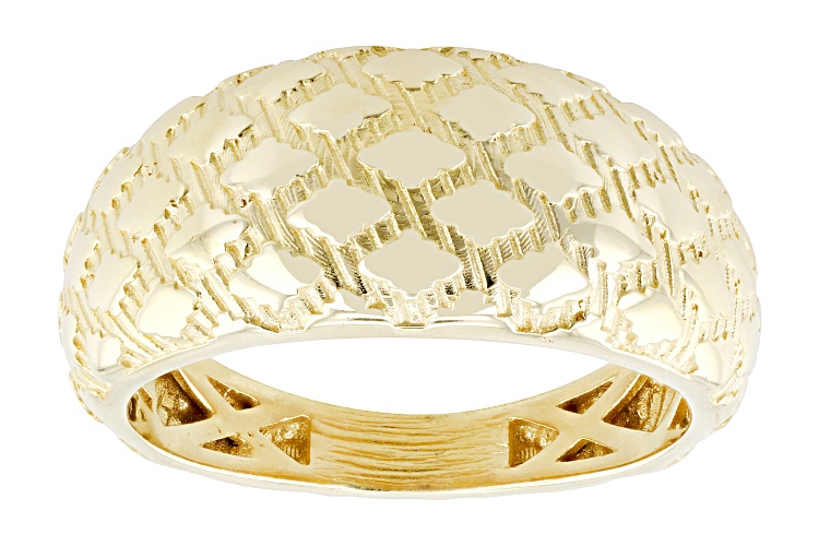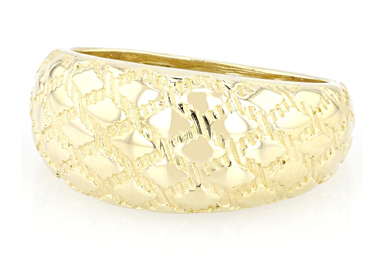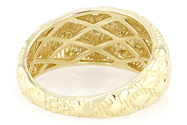 Introducing the Artisan Collection of Turkey™ 18K Yellow Gold Over Sterling Silver Textured Ring! This playful and eye-catching ring is a must-have addition to your jewelry collection. Crafted with love from high-quality materials, this unique piece features intricate textures that catch the light beautifully. The 0.38in width adds just the right amount of flair to any outfit, making it perfect for everyday wear or special occasions alike. Channel your inner fashionista with this stunning dome-shaped ring that exudes charm and elegance in every way possible! Not Sizeable.