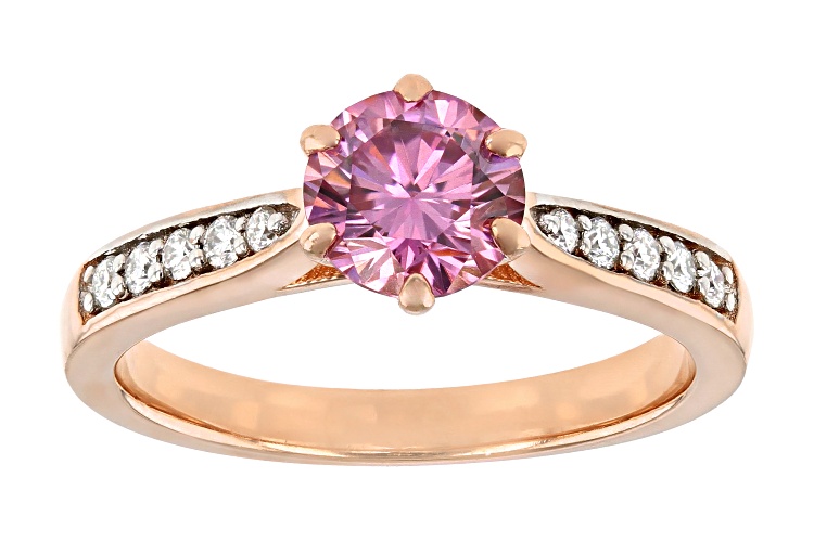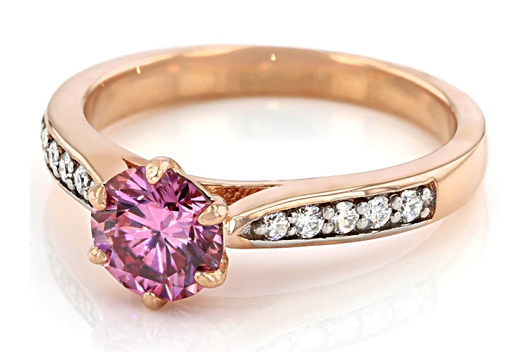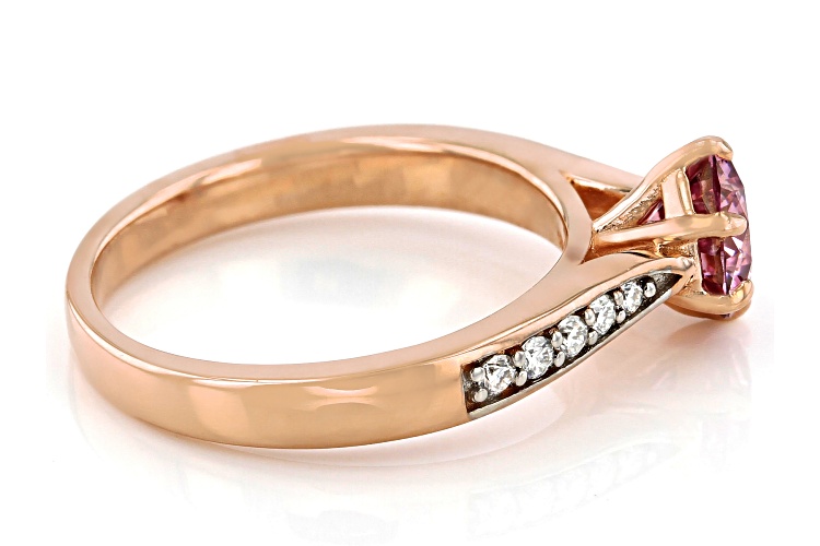MOISSANITE FIRE(R) AND PINK MOISSANITE 1.18CTW DEW ROUND 14K ROSE GOLD OVER SILVER RING - Size 9