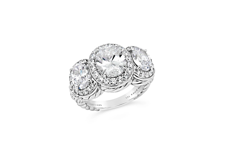 Judith Ripka 10.48ctw Oval and Round Bella Luce Diamond Simulant Rhodium Over Sterling Silver Ring - Size 10