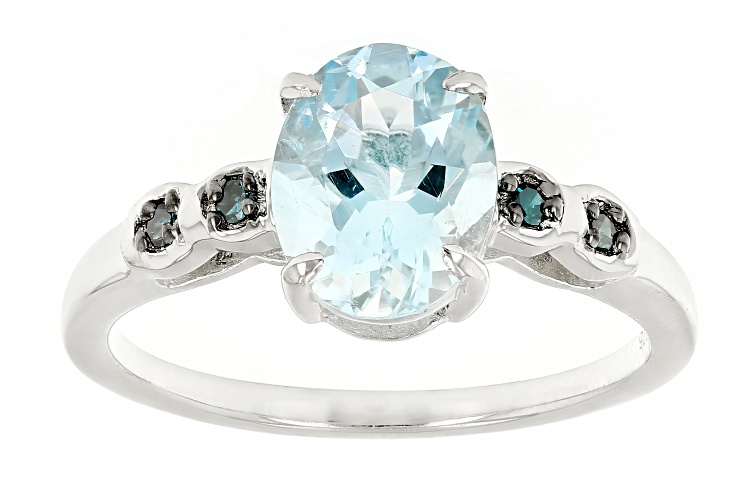 1.48ct Aquamarine With 0.04ctw Blue Diamond Accent Rhodium Over Sterling Silver Ring - Size 9