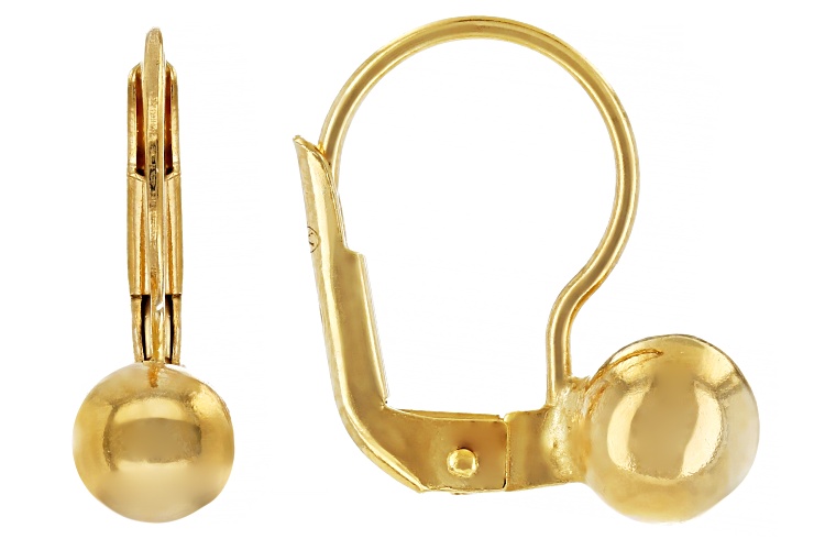18k Yellow Gold Over Sterling Silver Ball Earrings. Measure approximately 9/16" L x 3/16" W and have leverback backings.