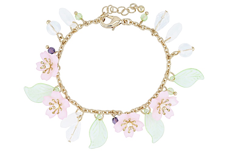 Off Park® Collection, Multi-Color Acrylic Gold Tone Flower Charm Bracelet. Measures approximately 0.65"W. Lobster claw clasp with a 2"extender.