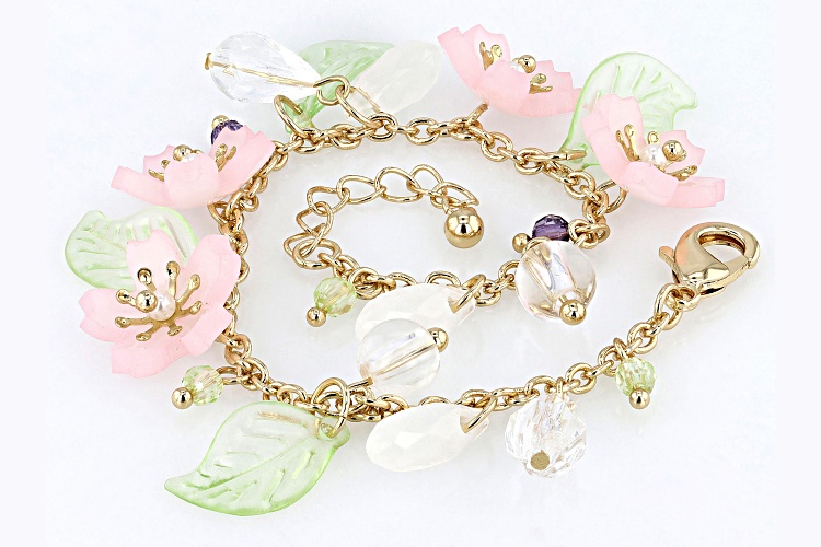Off Park® Collection, Multi-Color Acrylic Gold Tone Flower Charm Bracelet