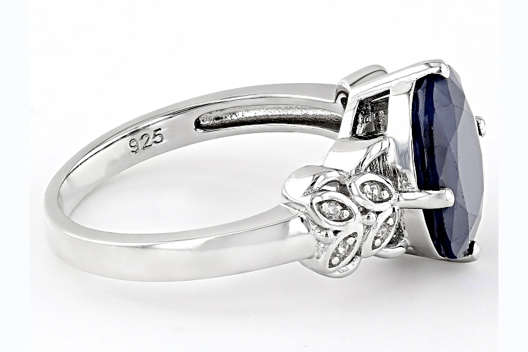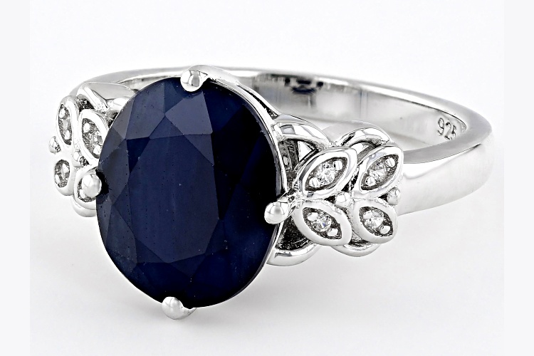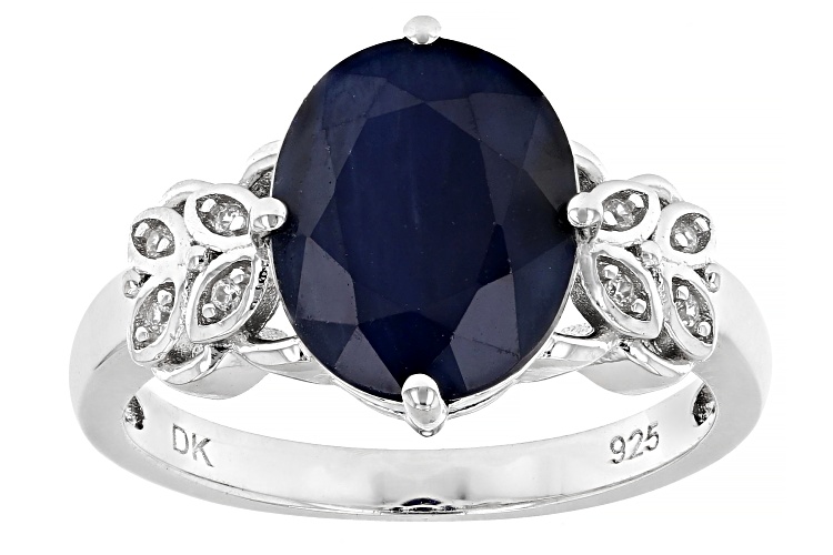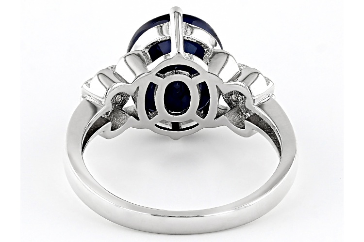• 3.50ct Oval Blue Sapphire With 0.07ctw Round White Zircon Rhodium Over Sterling Silver Ring - Size 10