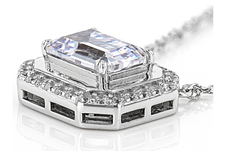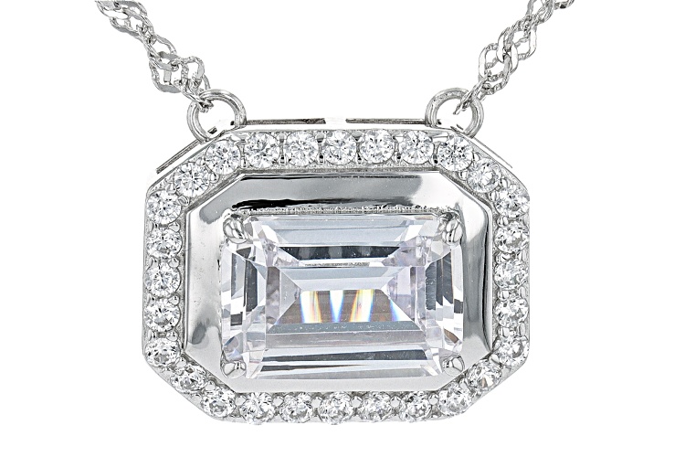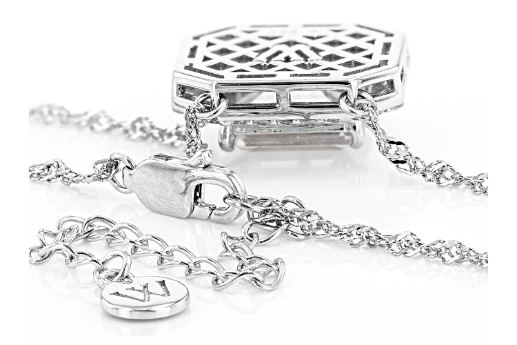 Charles Winston Bella Luce® white diamond simulant 5.98ctw round and emerald rhodium over sterling silver necklace. Measures approximately 18"L x 0.63W with Singapore chain plus 2" extender and lobster claw clasp. The diamond equivalent weight is 3.62ctw.
