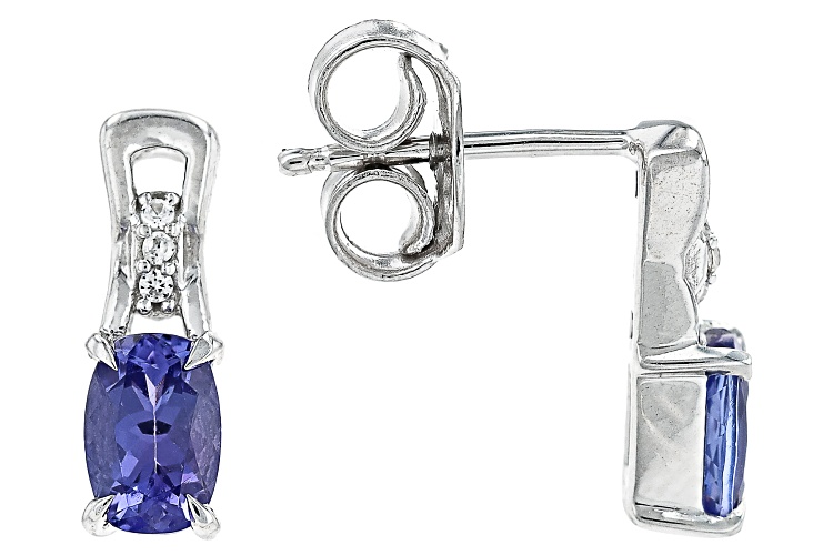 0.93ctw Rectangular Cushion Tanzanite with 0.07ctw Round White Zircon Rhodium Over Sterling Silver Earrings. Measures Approximately 0.51"L x 0.15"W. Push Backings. Accent Stones Primarily Zircon.