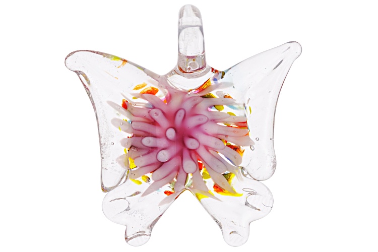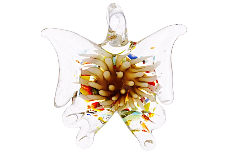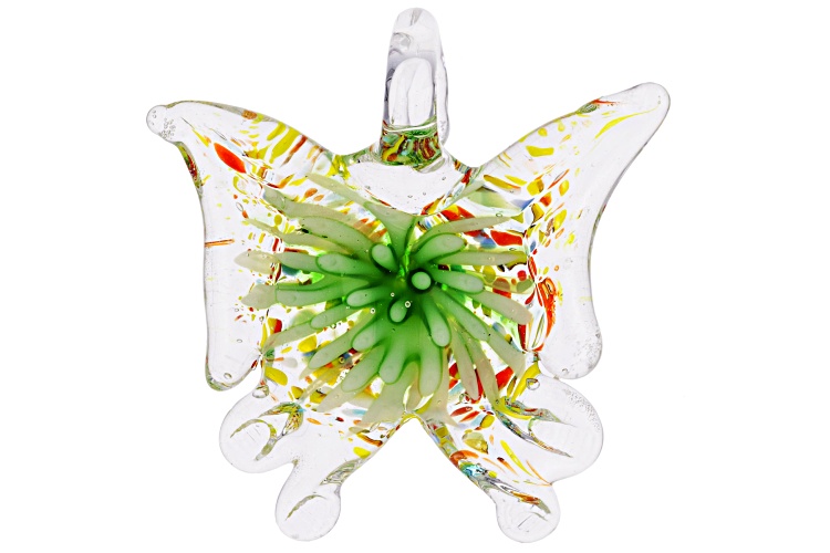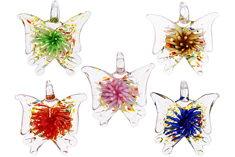 Multicolor 40x40mm Glass Butterfly Pendant Set of 5