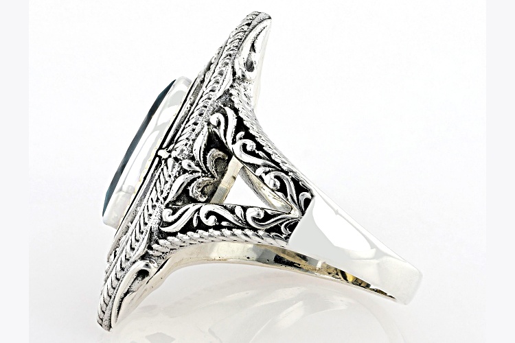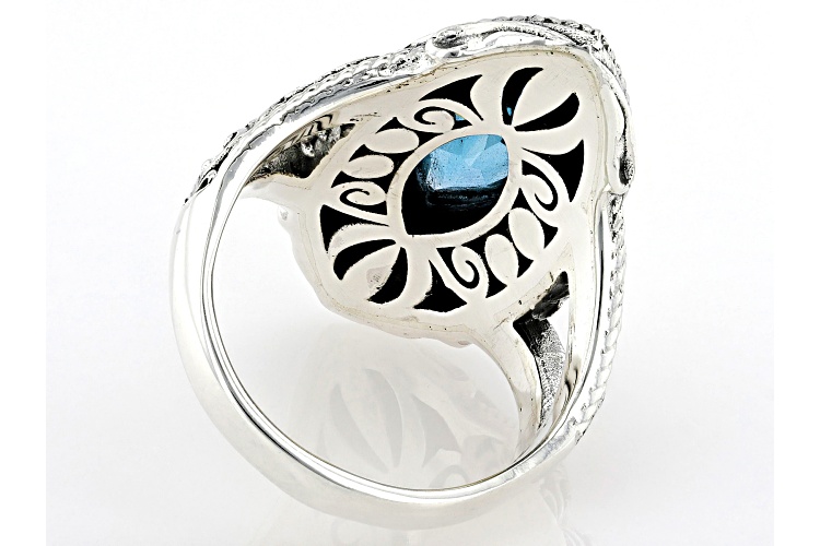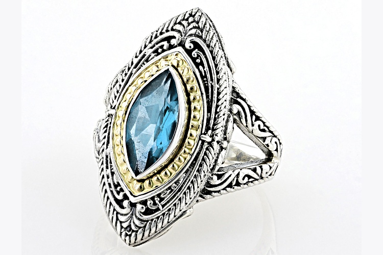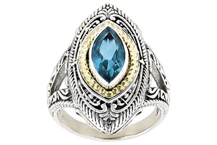 Pre-Owned Artisan Collection of Bali™ 1.91ct Marquise Blue Topaz Sterling Silver & 18K Gold Accent Ring. Measures Approximately 0.52"L x 1.05"W. Not Sizeable. Oxidized.. This product may be a customer return, vendor sample, or on-air display and is not in its originally manufactured condition. It may not be new. In some instances, these items are repackaged by JTV.