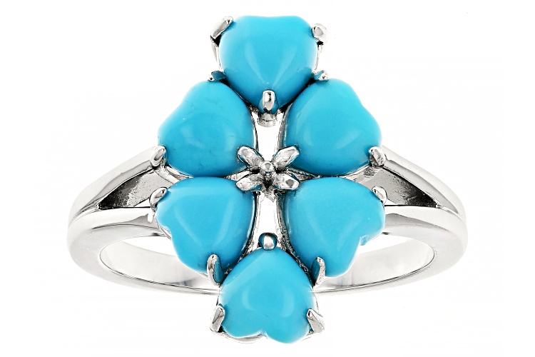 Heart Shaped Sleeping Beauty Turquoise Rhodium Over Sterling Silver Ring - Size 7