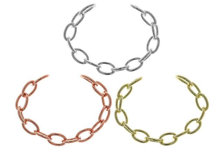 • Gold, Silver, & Rose Gold Tone Large Oval Link Cuff Bracelet Set of 3