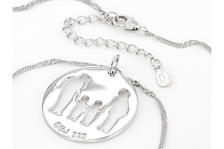 Rhodium Over Sterling Silver Family Of Four Pendant With 18" Singapore Chain. Measures Approximately 1.18"L x 0.98"W And 3mm Bail. Lobster Claw Clasp Closure With 2" Extender.