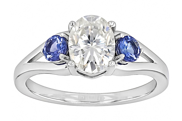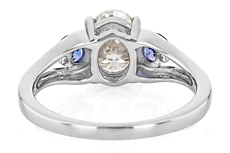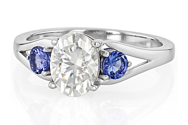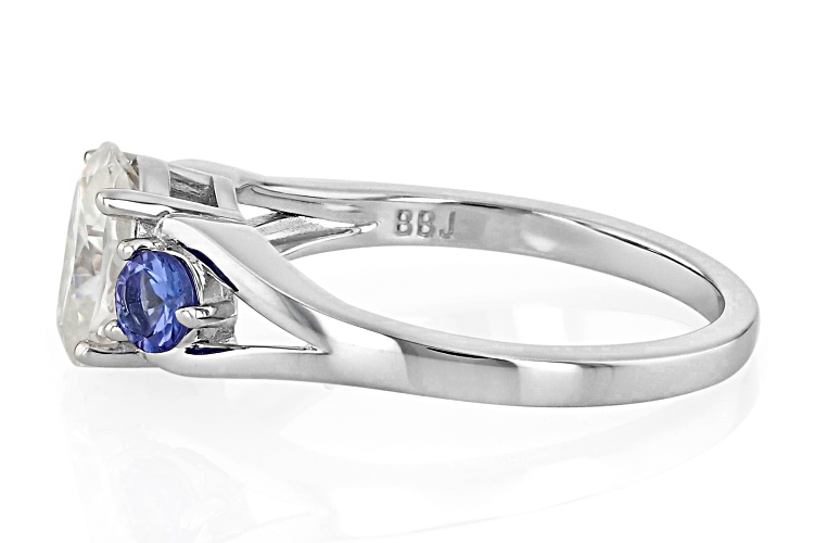 MOISSANITE FIRE® 1.50CT DEW AND TANZANITE PLATINEVE® 3 STONE RING - Size 6