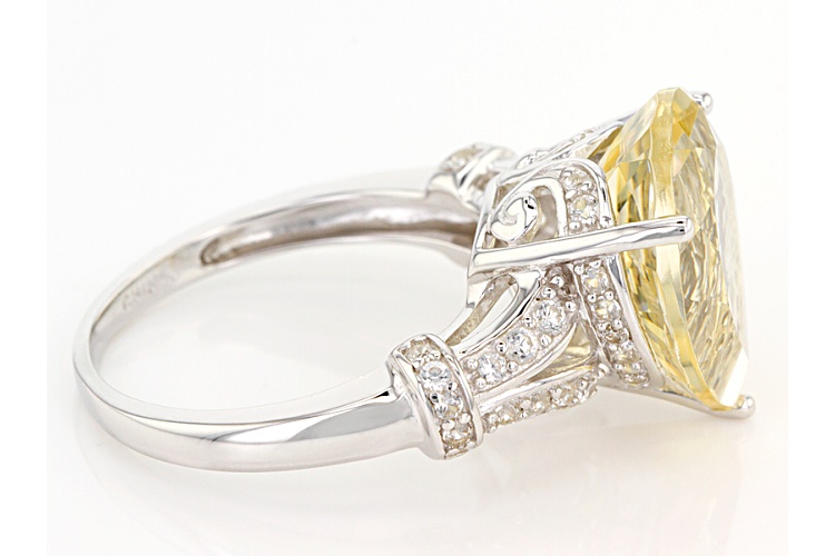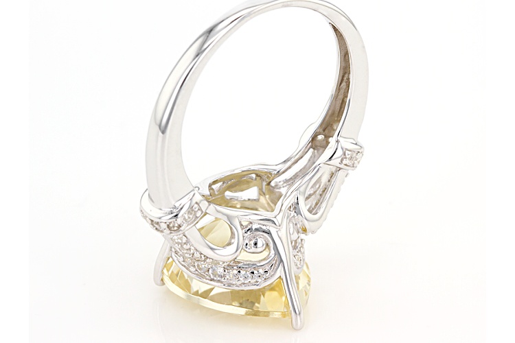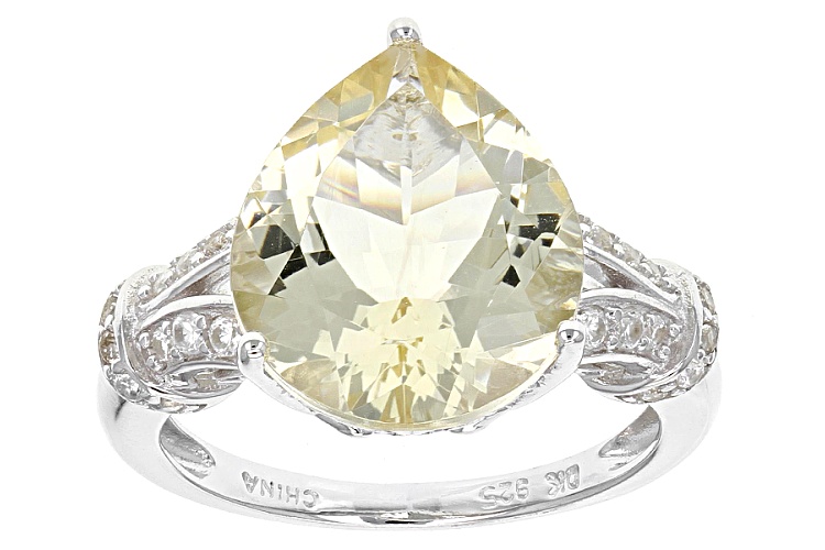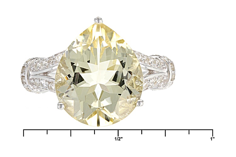 4.68ct Pear Shape Yellow Labradorite With .40ctw Round White Zircon Rhodium Over Silver Ring - Size 10