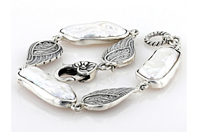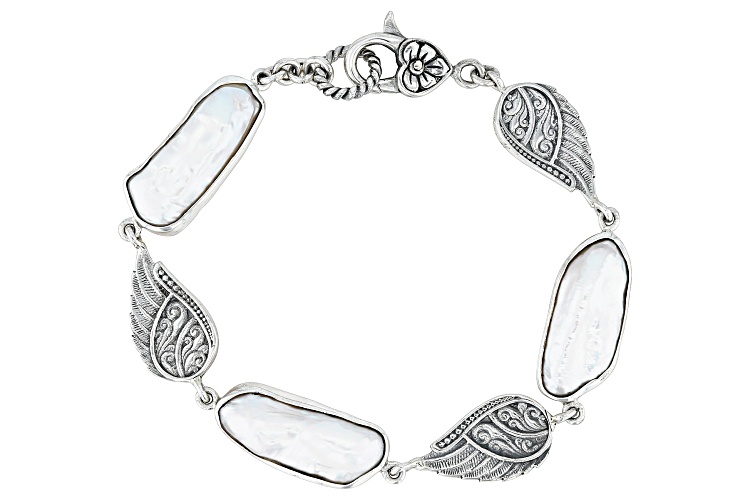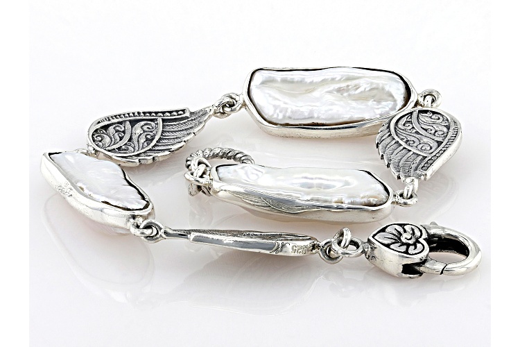 Artisan Collection of Bali™ White Cultured Freshwater Pearl Sterling Silver Angel Wing Bracelet - Size 7.5
