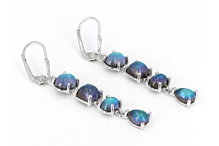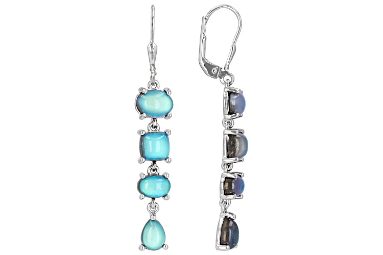 • Blue Aurora Moonstone Rhodium Over Sterling Silver Dangle Earrings