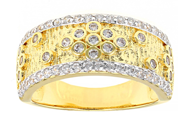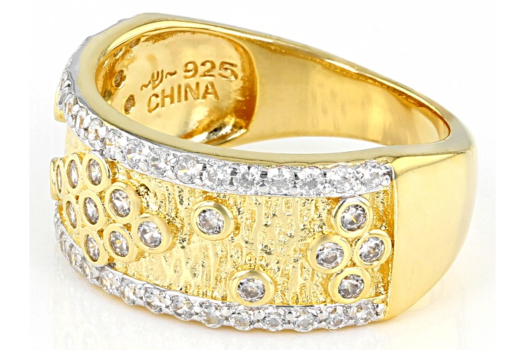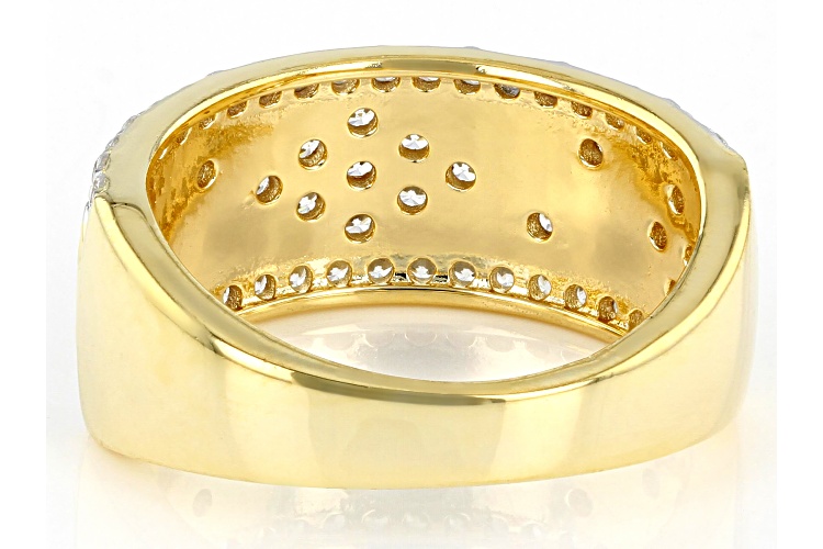 Bella Luce ® white diamond simulant 1.26ctw round, rhodium and Eterno™ 18k yellow gold over sterling silver ring. Measures approximately 0.75"L x 0.31"W and is not sizeable. The diamond equivalent weight is 0.71ctw.