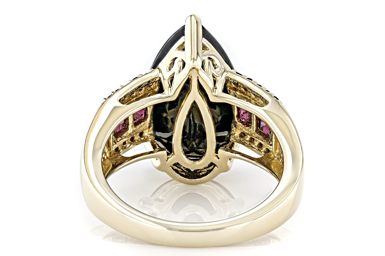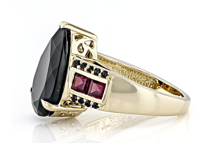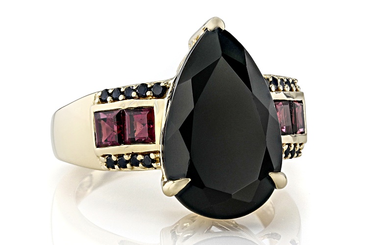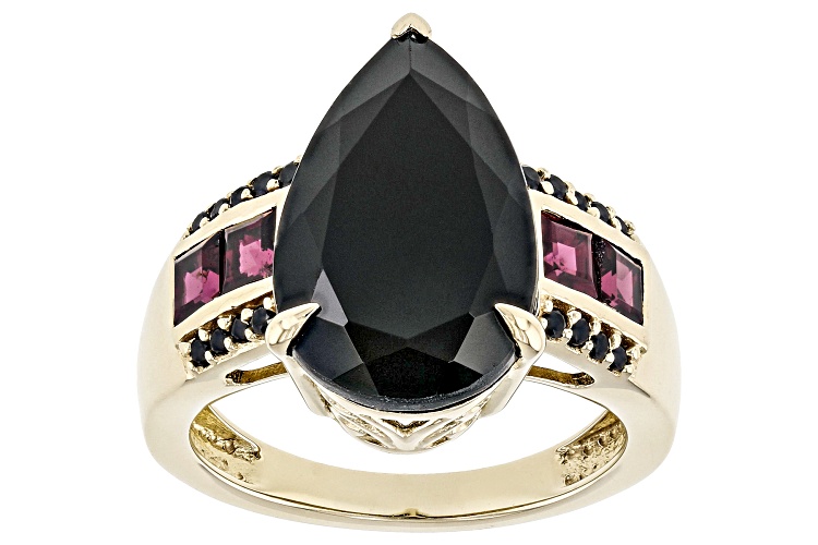• 6.88ctw Black Spinel With 0.68ctw Rhodolite 18k Yellow Gold Over Sterling Silver Ring - Size 7