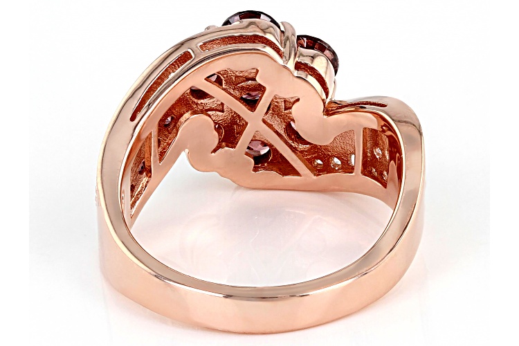 Bella Luce ® Esotica™ blush zircon and white diamond simulants 4.00ctw round, Eterno™ 18k rose gold over sterling silver ring. Measures approximately 0.81"L x 0.44"W and is not sizeable.