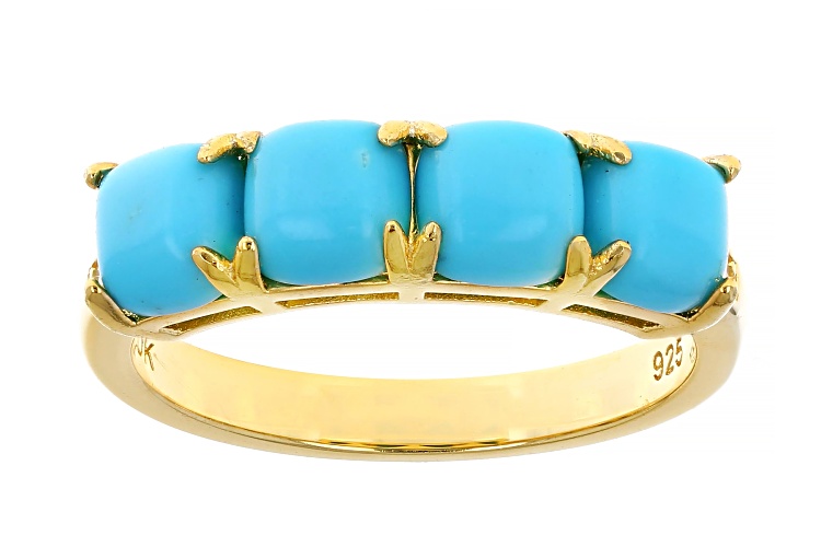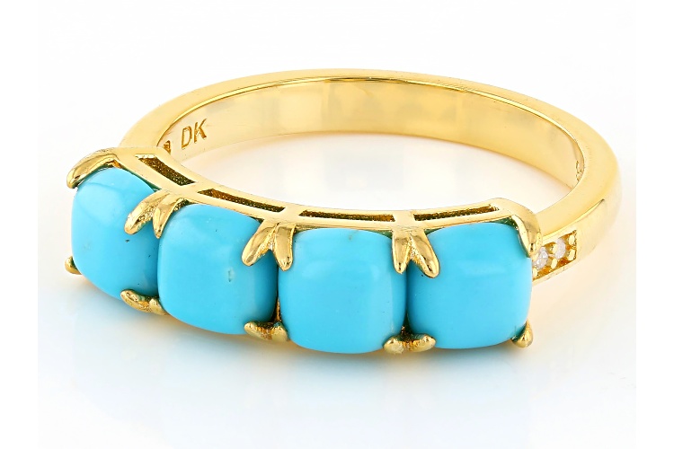 5mm Square Cushion Sleeping Beauty Turquoise With 0.02ctw Round White Diamond 18k Yellow Gold Over Sterling Silver Ring. Measures Approximately 0.98"L x 0.23"W. Not Sizeable.