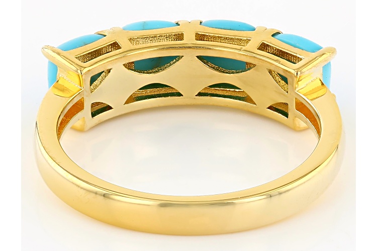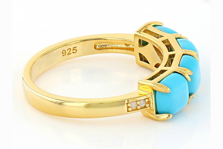 • 5mm Sleeping Beauty Turquoise With 0.02ctw White Diamond 18k Yellow Gold Over Sterling Silver Ring - Size 10