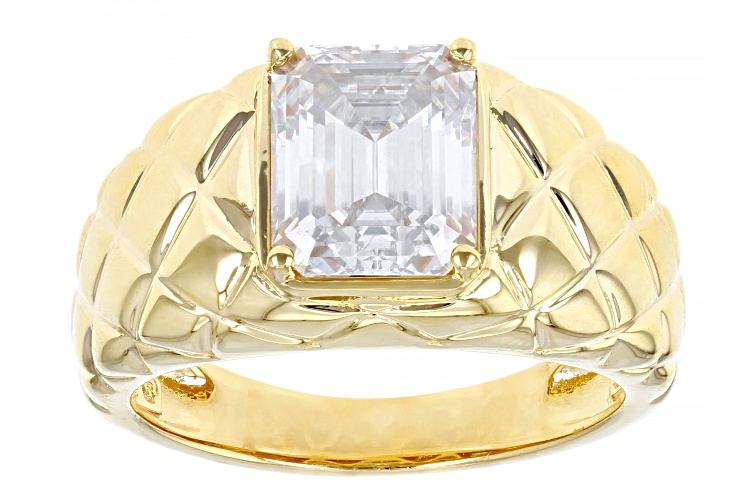 • Pre-Owned MOISSANITE FIRE(R) 3.55CT DEW OCTAGONAL EMERALD CUT 14K YELLOW GOLD OVER SILVER MEN'S RING - Size 11