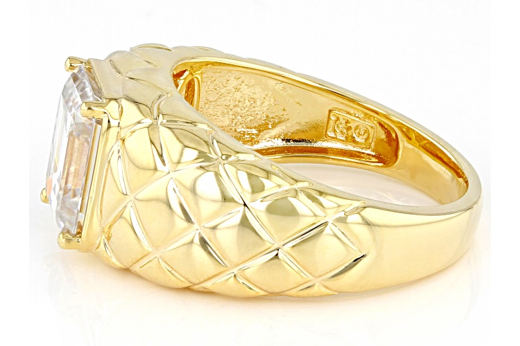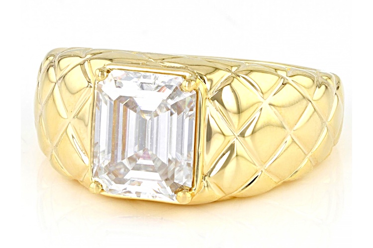 Pre-Owned Moissanite Fire(R) 3.55ct diamond equivalent weight octagonal emerald cut, 14k yellow gold over silver men's ring. Measures approximately 7/16" L x 1/8" W and is not sizeable. Actual moissanite weight is 3.24ct. . This product may be a customer return, vendor sample, or on-air display and is not in its originally manufactured condition. It may not be new. In some instances, these items are repackaged by JTV.