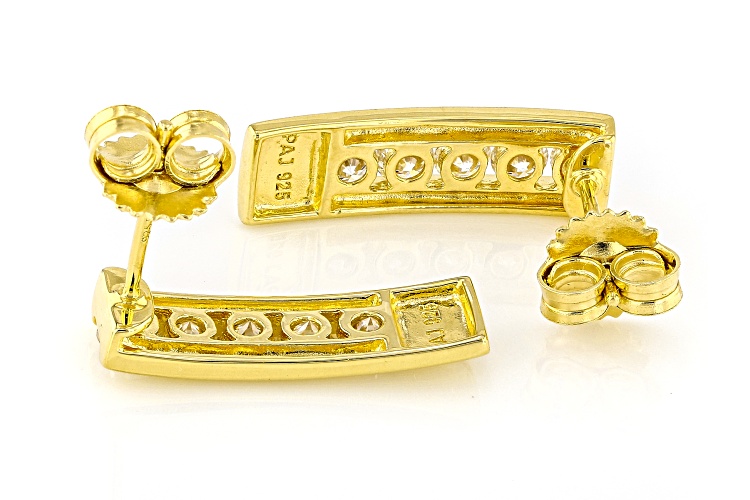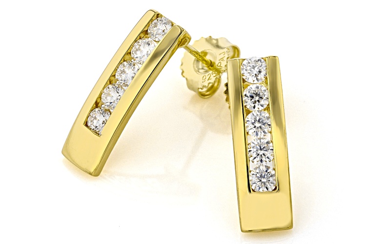 MOISSANITE FIRE® 1.00CTW DEW ROUND 14K YELLOW GOLD OVER SILVER EARRINGS
