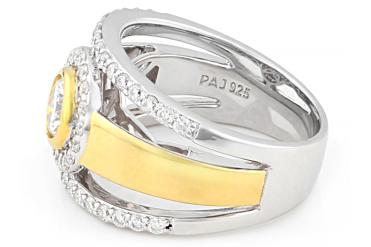 MOISSANITE FIRE® 1.60CTW DEW PLATINEVE® AND 14K YELLOW GOLD OVER SILVER RING - Size 9