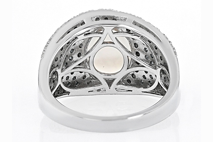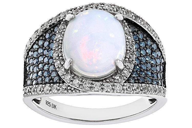 2.00ct Ethiopian Opal with 0.42ctw Blue Diamond and White Zircon Rhodium Over Sterling Silver Ring - Size 5