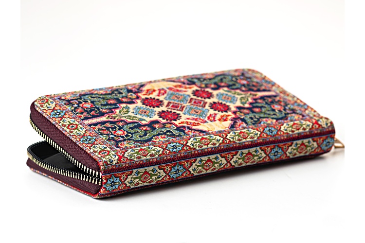 Artisan Collection of Turkey™ Multi Color Turkish Tapestry Fabric Wallet 3.5"L x7.5"W. Zipper Closure.