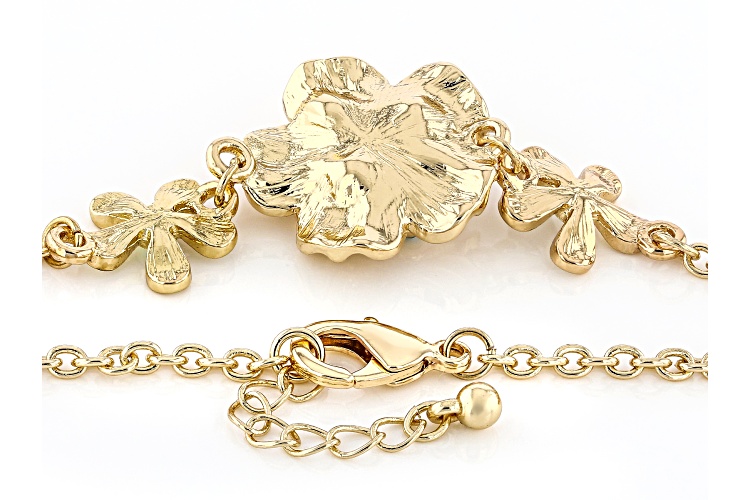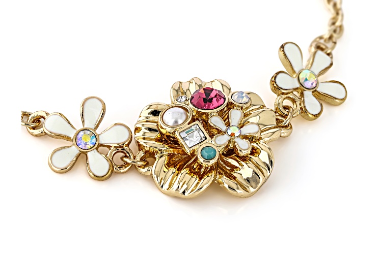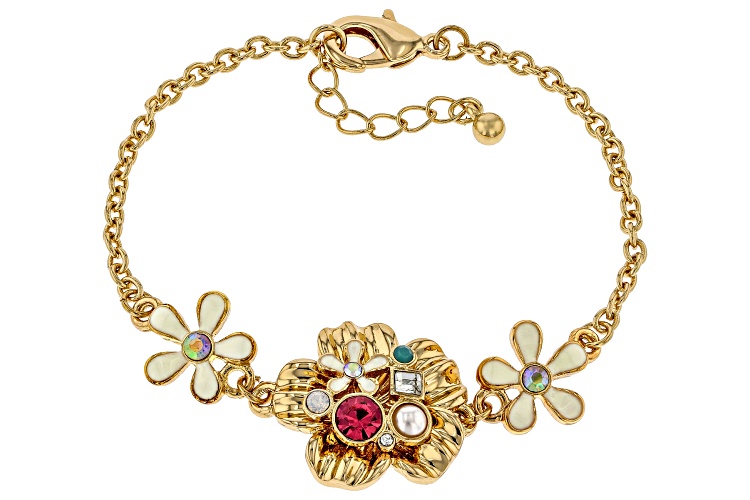 Off Park® Collection, Multi-Color Crystal & Acrylic Gold Tone Flower Bracelet. Measures approximately 7.50"L x 0.87"W. Lobster claw clasp with 1" extender.