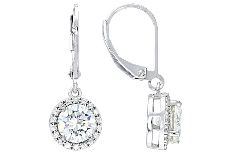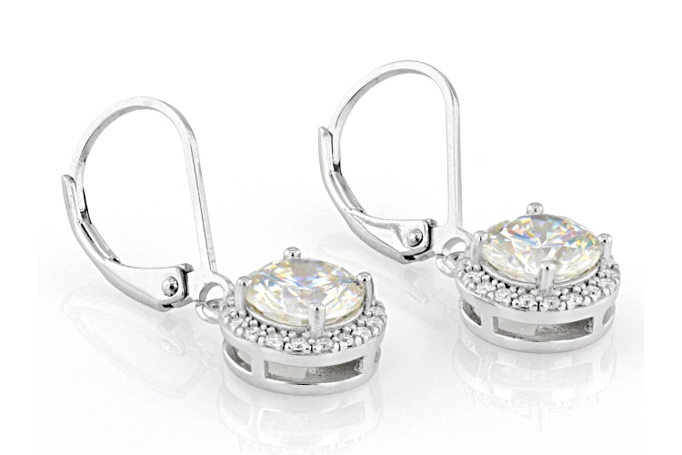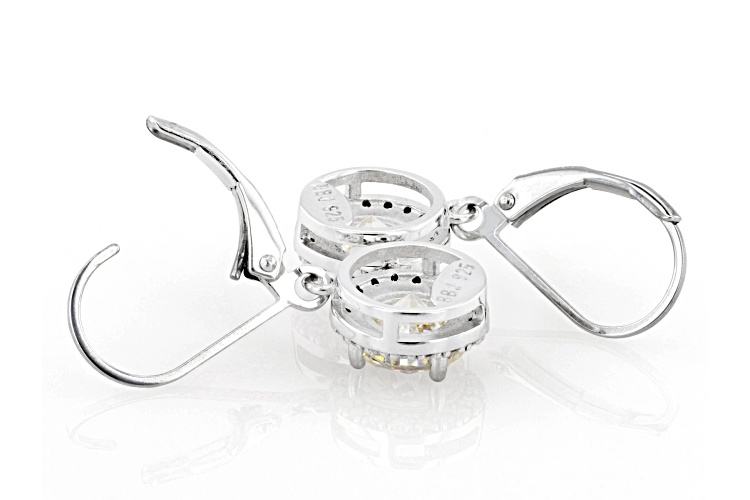 3.54ctw Round Strontium Titanate With .31ctw Round Moissanite Rhodium Over Silver Dangle Earrings