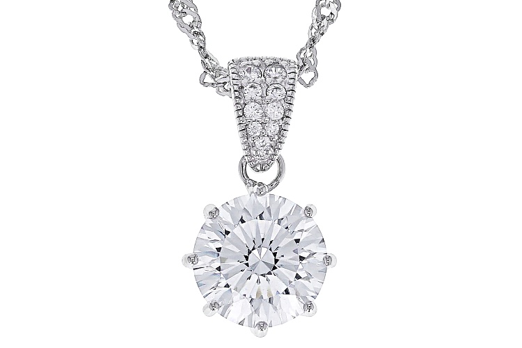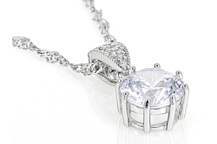 Bella Luce ® Dillenium, white diamond simulant 4.73ctw round, rhodium over sterling silver pendant with 18" chain. Measures approximately 11/16"L x 3/8"W with a 2.5mm bail.