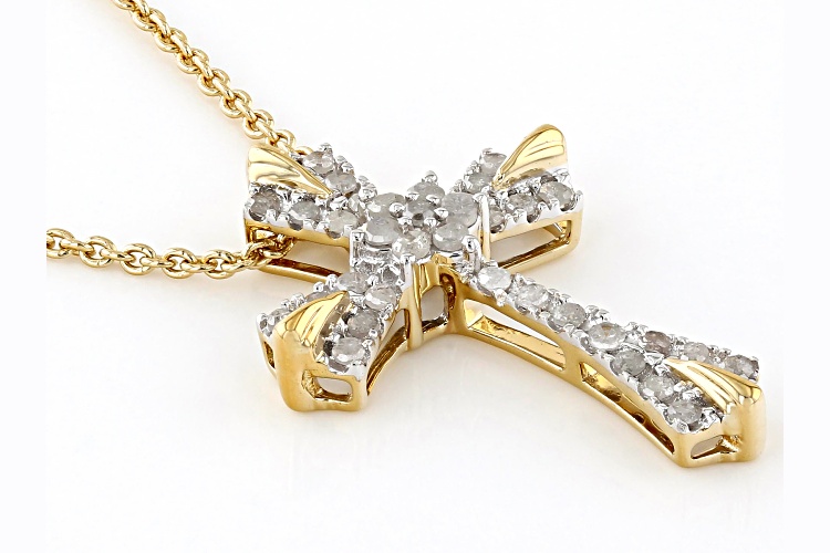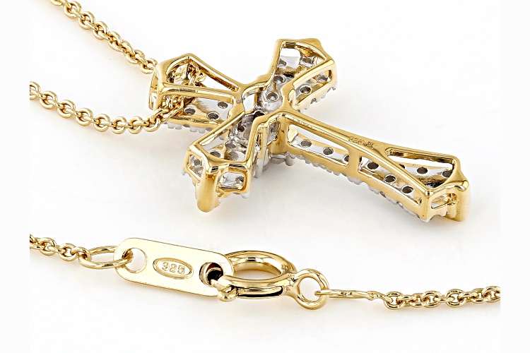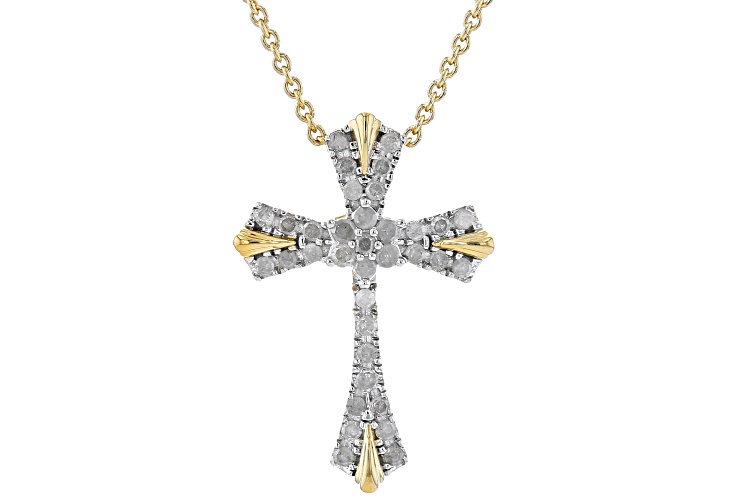 Engild™ 0.25ctw Round White Diamond 14k Yellow Gold Over Sterling Silver Cross Slide Pendant