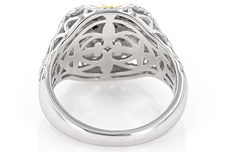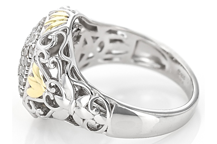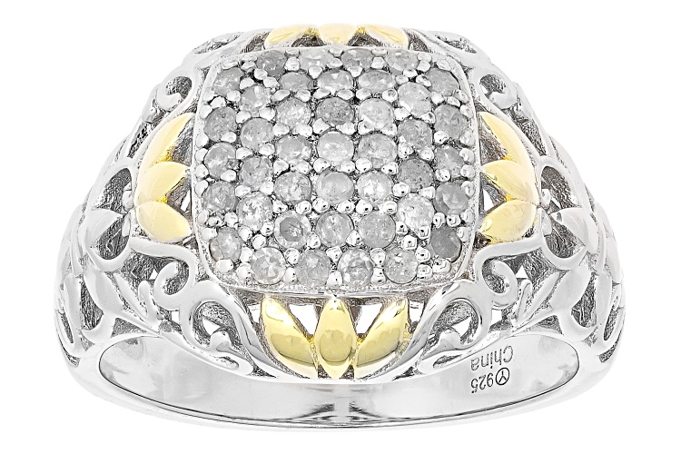 Pre-Owned 0.40ctw round white diamond, rhodium and 14k yellow gold over sterling silver cluster ring. Measures approximately 9/16"L x 9/16"W and is not sizeable.. This product may be a customer return, vendor sample, or on-air display and is not in its originally manufactured condition. It may not be new. In some instances, these items are repackaged by JTV.