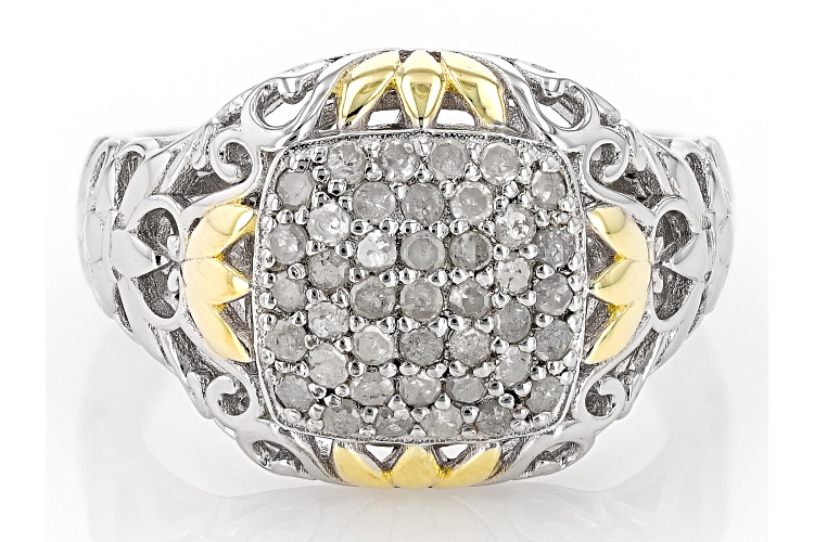 • Pre-Owned 0.40ctw Round White Diamond Rhodium And 14k Yellow Gold Over Sterling Silver Cluster Ring - Size 6