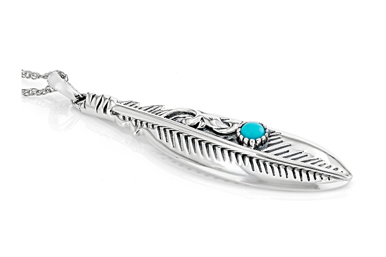 Southwest Style by JTV™ 4mm Sleeping Beauty Turquoise Sterling Silver Feather Pendant With Chain