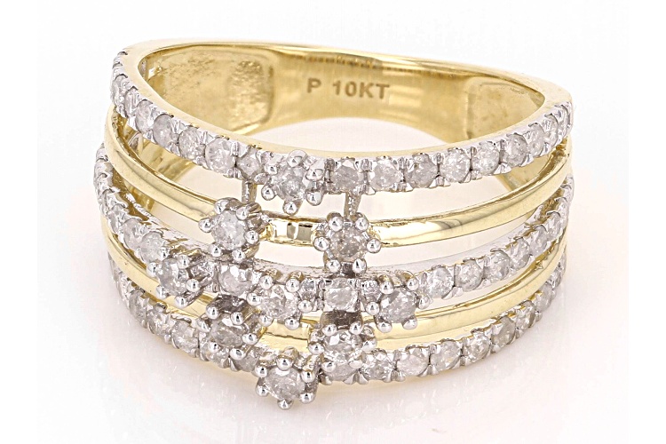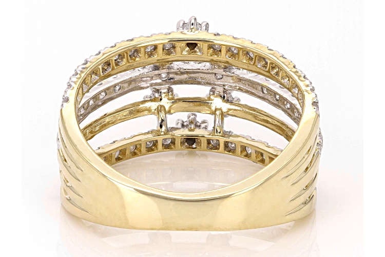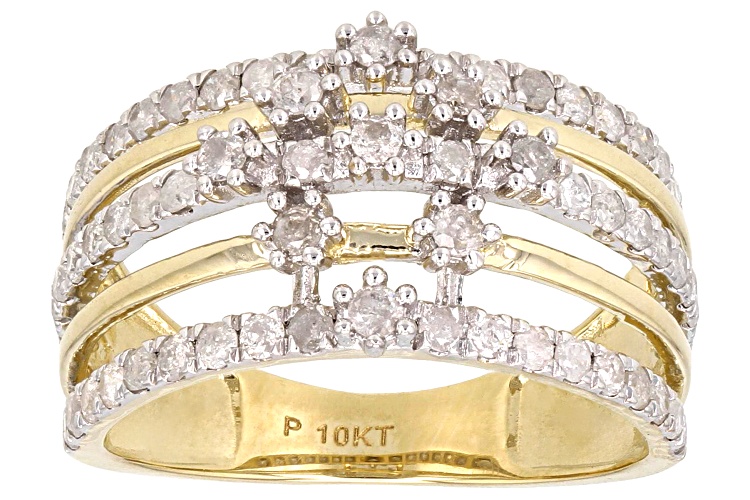 • 1.00ctw Round White Diamond 10k Yellow Gold Multi-Row Ring - Size 6