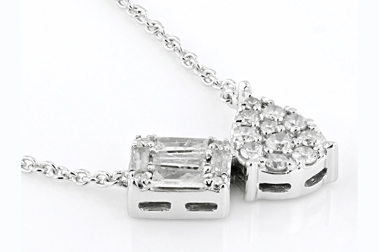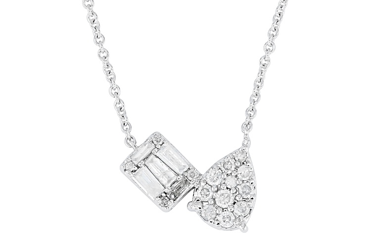 0.35ctw Baguette And Round White Diamond 10k White Gold Cluster Necklace - Size 18