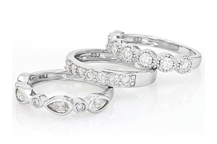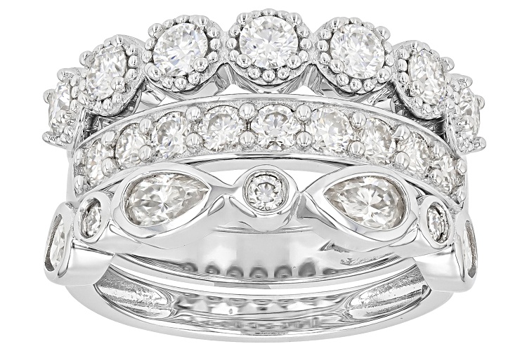 • MOISSANITE FIRE® 2.37CTW DEW PLATINEVE® SET OF 3 STACKABLE BAND RINGS - Size 6
