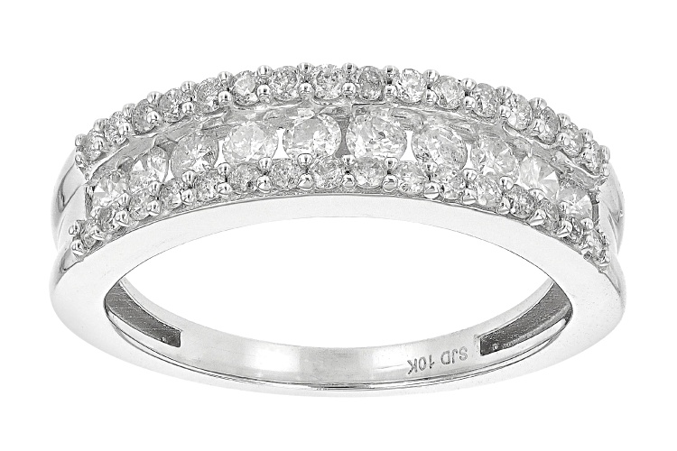 • 0.75ctw Round White Diamond 10k White Gold Band Ring - Size 8