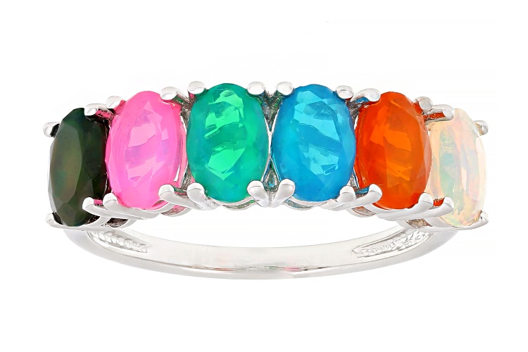 • 1.20ctw Multi-Color Ethiopian Opal Rhodium Over Sterling Silver Ring - Size 5
