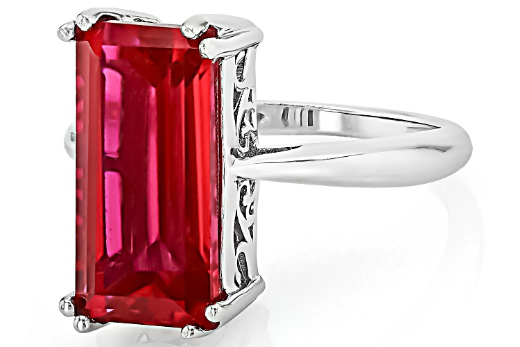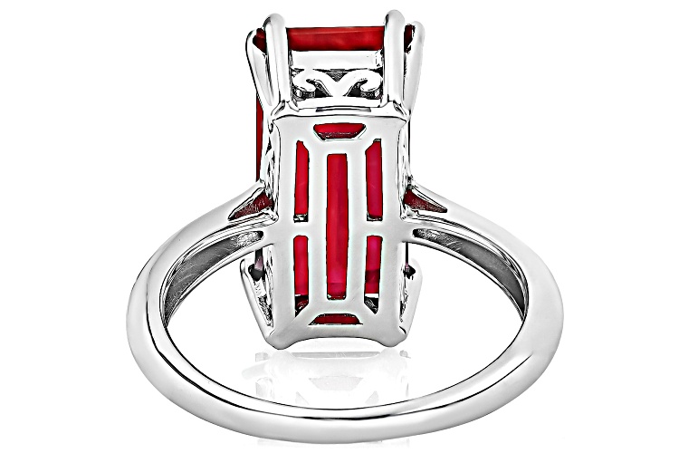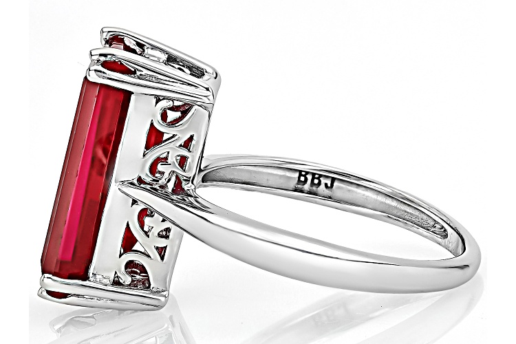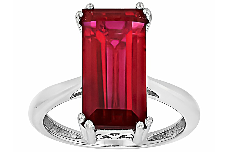 9.00ct Baguette Lab Created Ruby Rhodium Over Sterling Silver Ring - Size 8