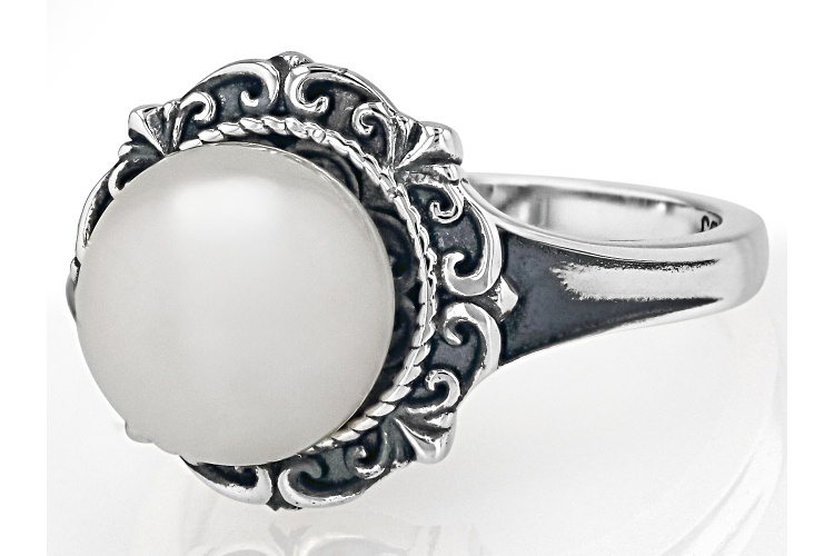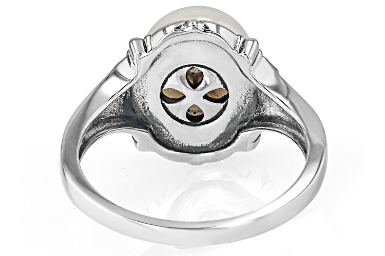 9.5mm White Cultured Freshwater Pearl Oxidized Sterling Silver Ring. Measures approximately 1/2" L x 1/2" W and is not sizeable. Colors, shapes, and sizes may vary.