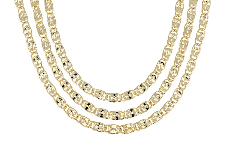 Moda Al Massimo™ 18k Yellow Gold Over Bronze 4mm Fancy Link Necklace. Lobster Claw Clasp Closure with 1" Extender. Made in Italy.